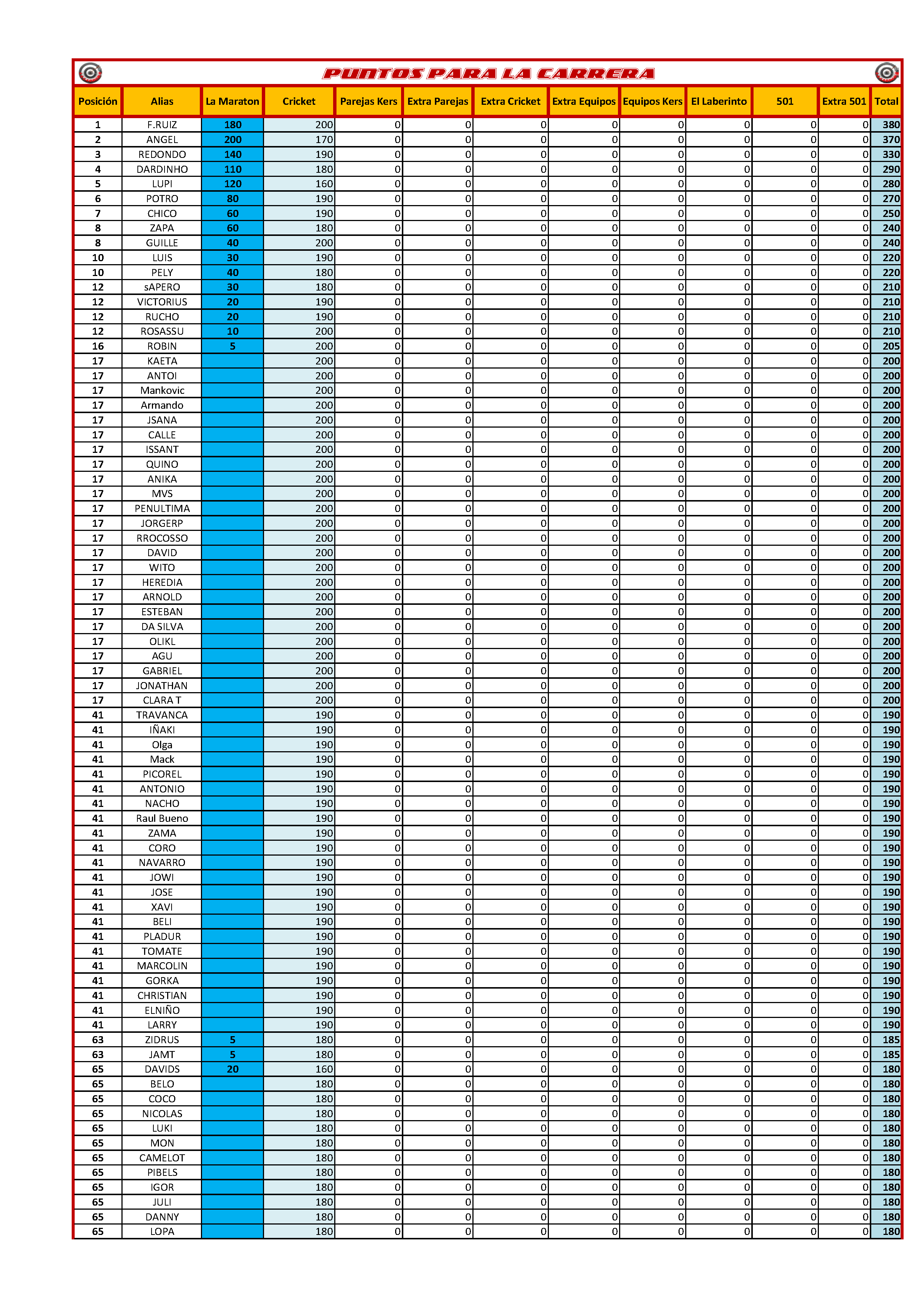 ¡¡Ya puedes consultar tus puntos para nuestro ranking de finales La Carrera, donde se decide quién será el próximo jugador TOP1 Radikal World de la temporada 2015-2016 de Radikal Darts!!!